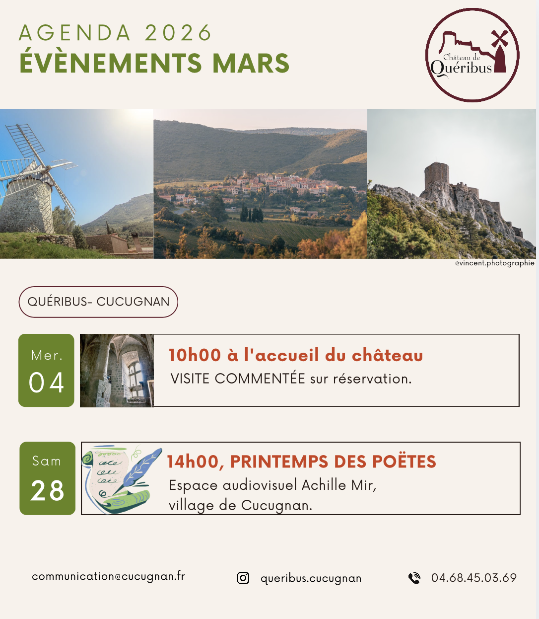 Chateau de Quéribus Cucugnan, FranceVenez découvrir le château de Quéribus , son histoire, son architectureLe mercredi 4 mars à 10h Réservation obligatoire : 04 68 45 03 69 ou 06 71 72 64 04, communication@cucugnan.frCrédit photographie : @vincentphotographie